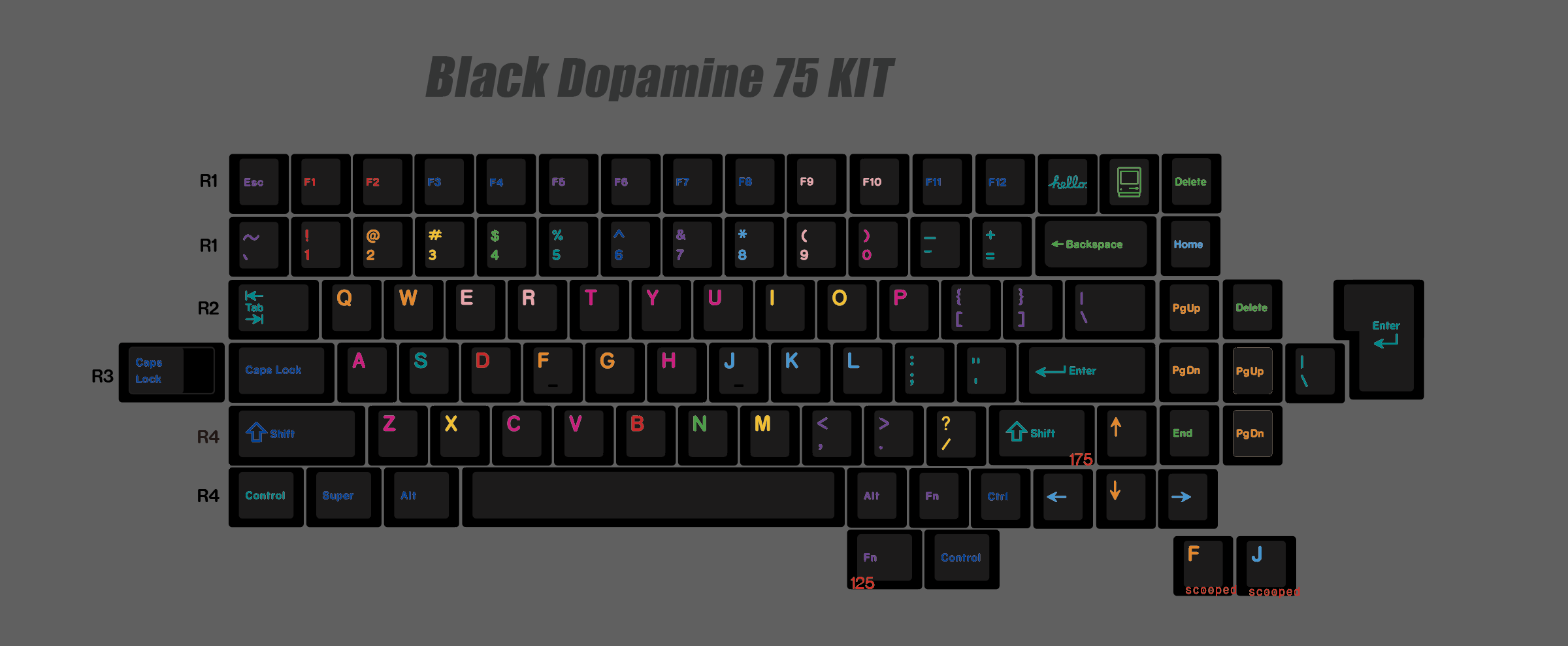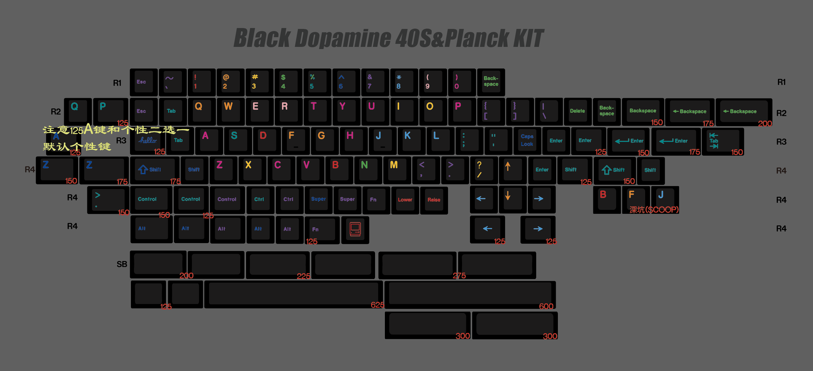 针对40键盘,R3的1.25U用了一颗个性来代替TAB / CAPS LOCK / QAZ里的A键,可以免费备注更改要哪个,不备注默认是发hello个性。