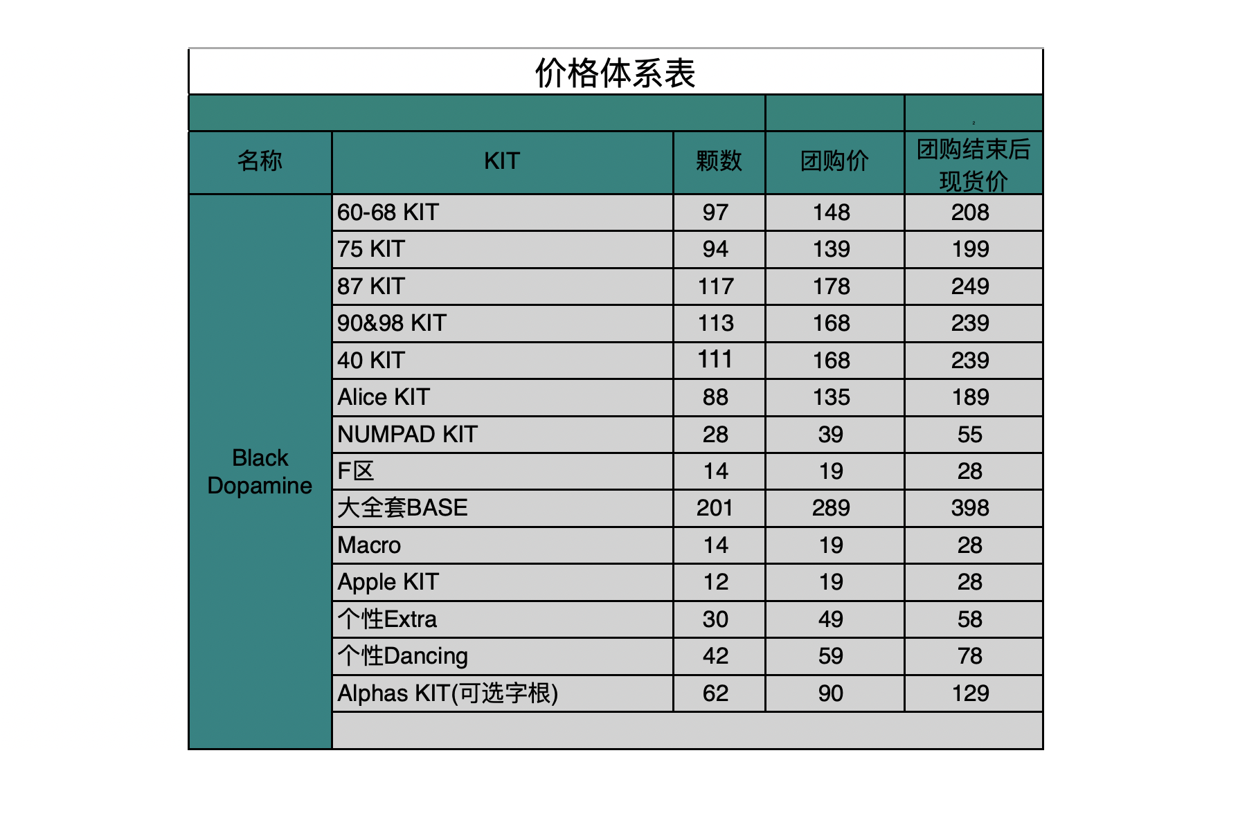 阶梯价的计算以字母区的数量计算所有kit的阶梯价。