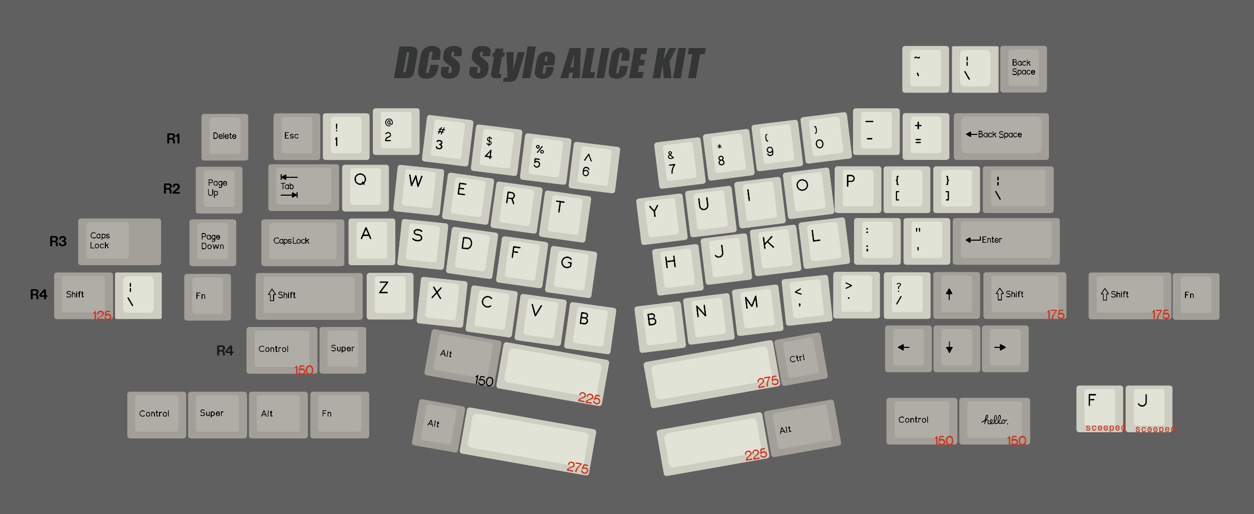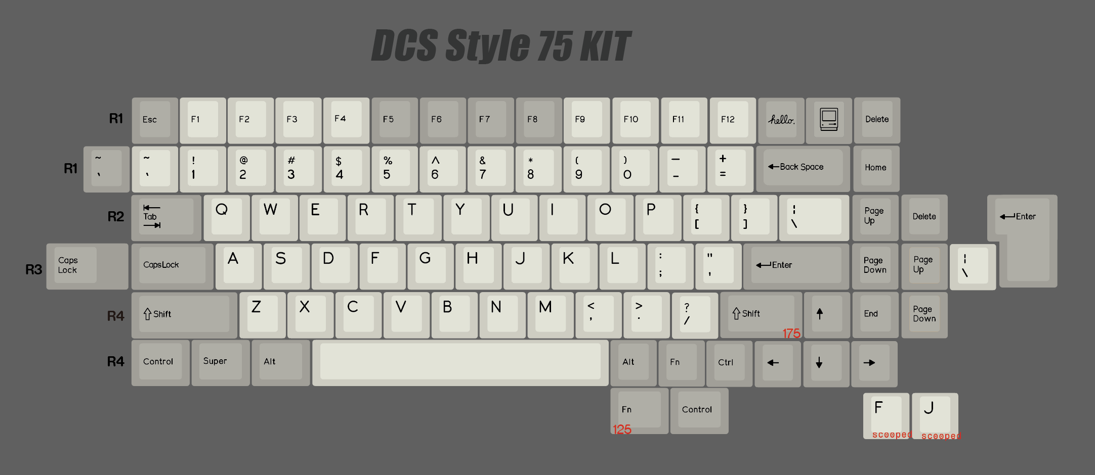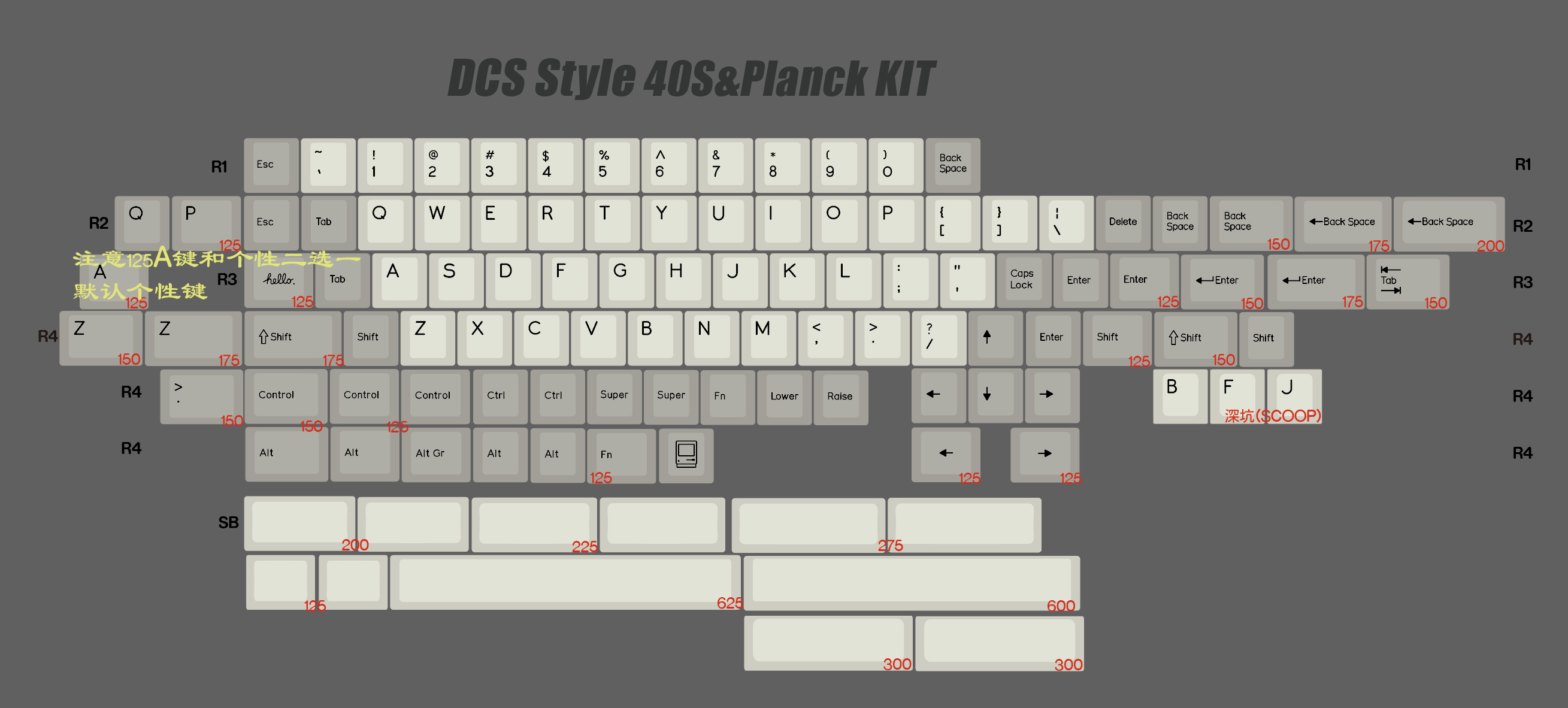 针对40键盘,R3的1.25U用了一颗个性来代替TAB / CAPS LOCK / QAZ里的A键,可以免费备注更改要哪个,不备注默认是发hello个性。